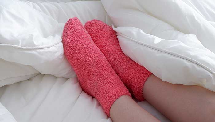 หลายคนมีอาการเท้าเย็นขณะนอน ซึ่งทำให้นอนหลับไม่สนิท ดังนั้นเขาจึงสวมถุงเท้านอนเพื่อให้อุ่นแล้วนอนหลับดี
